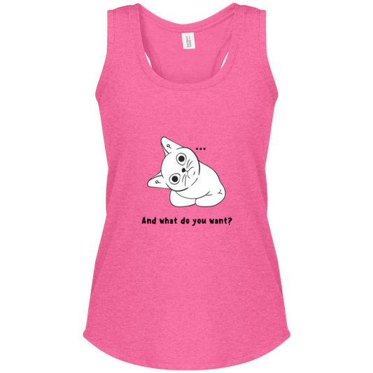 "...what do you want?" Women's Perfect Tri Racerback Tank