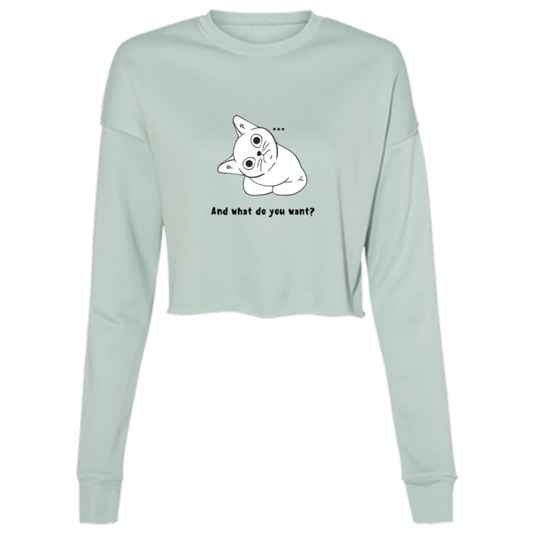 "...what do you want?" Ladies' Cropped Fleece Crew