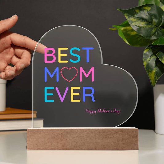 "Best Mom Ever" Printed Heart Acrylic Plaque